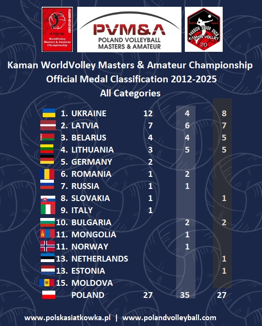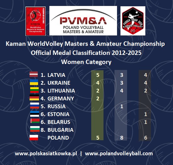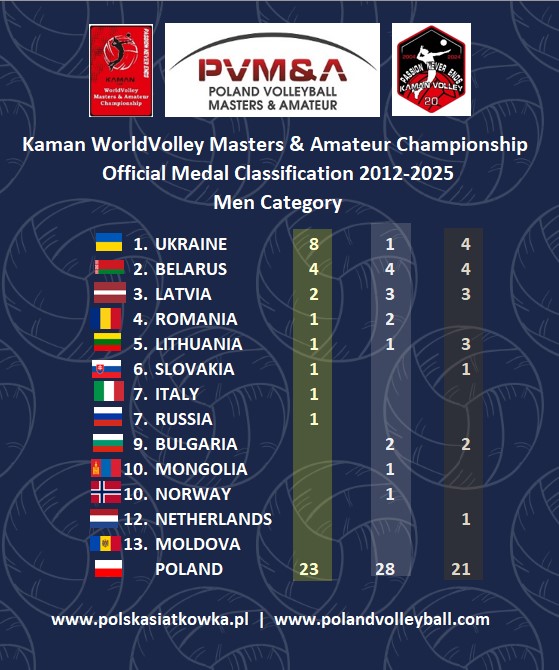 Polska ze względu na niezwykłą popularność siatkówki w kraju i ilość polskich drużyn występujących na Kaman Cup, nie jest klasyfikowana a ilość zdobywanych medali podawana jest informacyjnie.