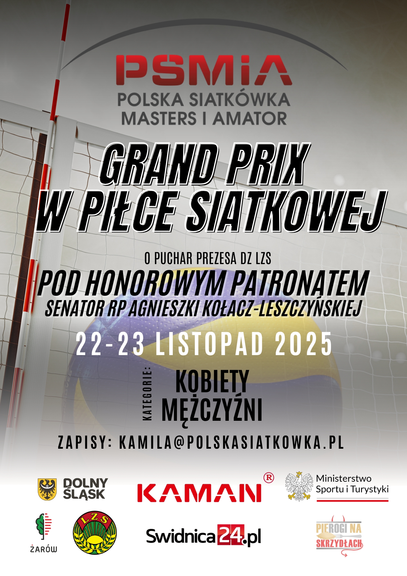 Wszelkich informacji udziela oraz zgłoszenia do turnieju przyjmuje koordynator wydarzenia KAMILA REGNOWSKA tel. 665 338 378, kamila@polskasiatkowka.pl