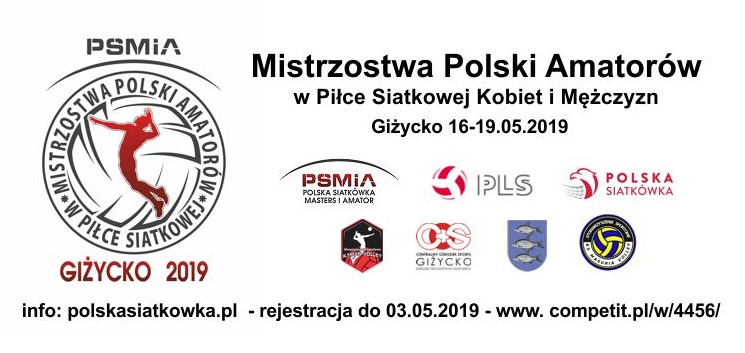 Oficjalne Mistrzostwa Polski Amatorów w Piłce Siatkowej Kobiet i Mężczyzn w Giżycku 16-19.05.2019.