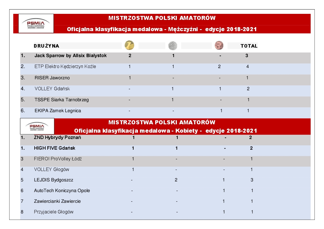 Po czterech latach oficjalnych Mistrzostw Polski Amatorów pokusiliśmy się o stworzenie mistrzowskiej klasyfikacji medalowej.