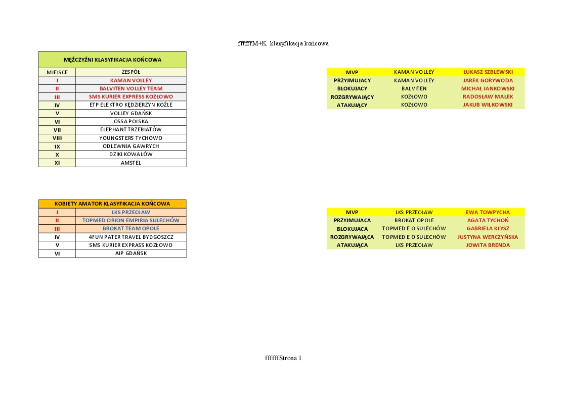 Klasyfikacja końcowa: