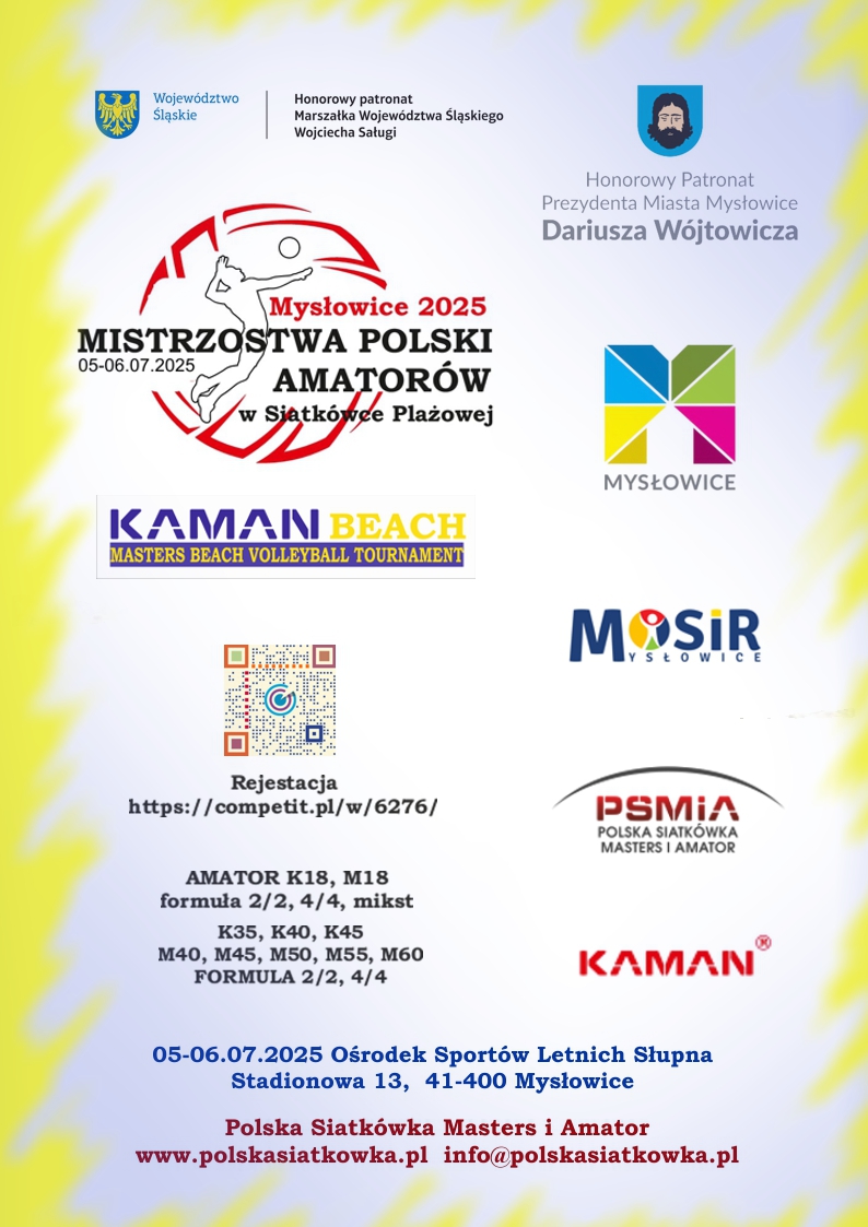 W mysłowickim Parku Słupna w dniach 05-06.07.2025 zagramy o Mistrzostwo Polski Amatorów w Siatkówce Plażowej.