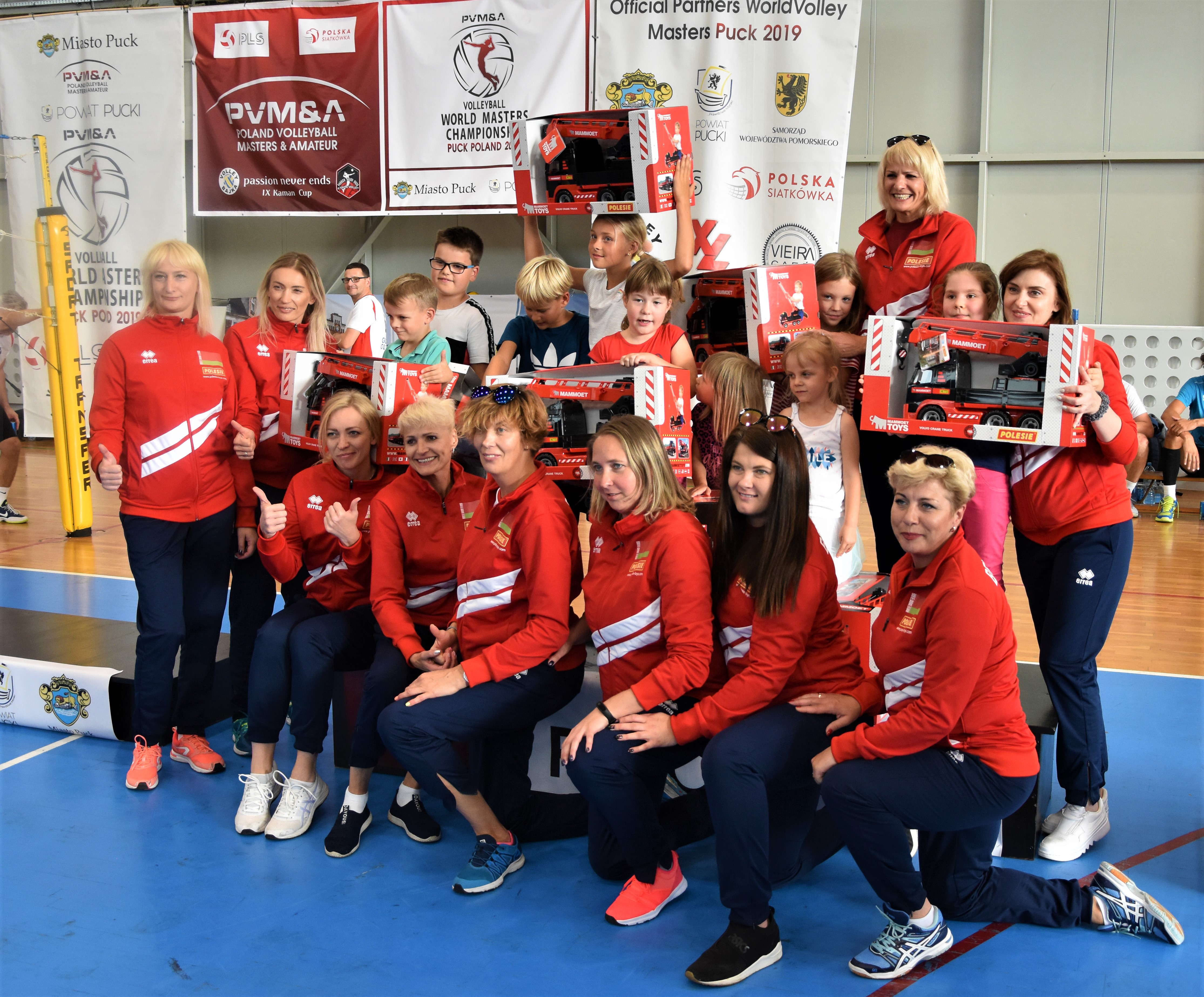 Do sympatycznej sytuacji i miłej niespodzianki doszło przed ceremonią medalową mistrzostw, kiedy to zawodniczki Polesia Białoruś obdarowały najmłodszych uczestników szkółki siatkarskiej Daniela Plińskiego zabawkami w postaci wielkich samochodów których producentem jest sponsor białoruskiej drużyny firma Polesie.
