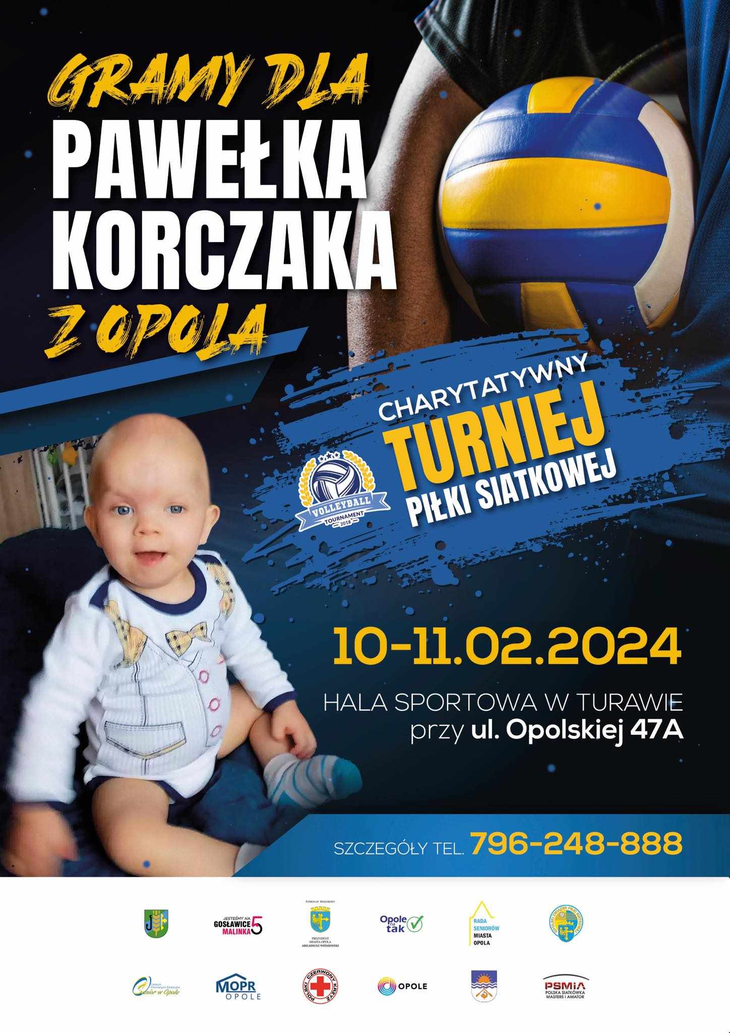 Charytatywny, Amatorski Turniej Piłki Siatkowej, w kategorii damskiej i męskiej. Celem inicjatywy jest zbiórka środków finansowych na rzecz leczenia Pawła Korczaka z Opola.
