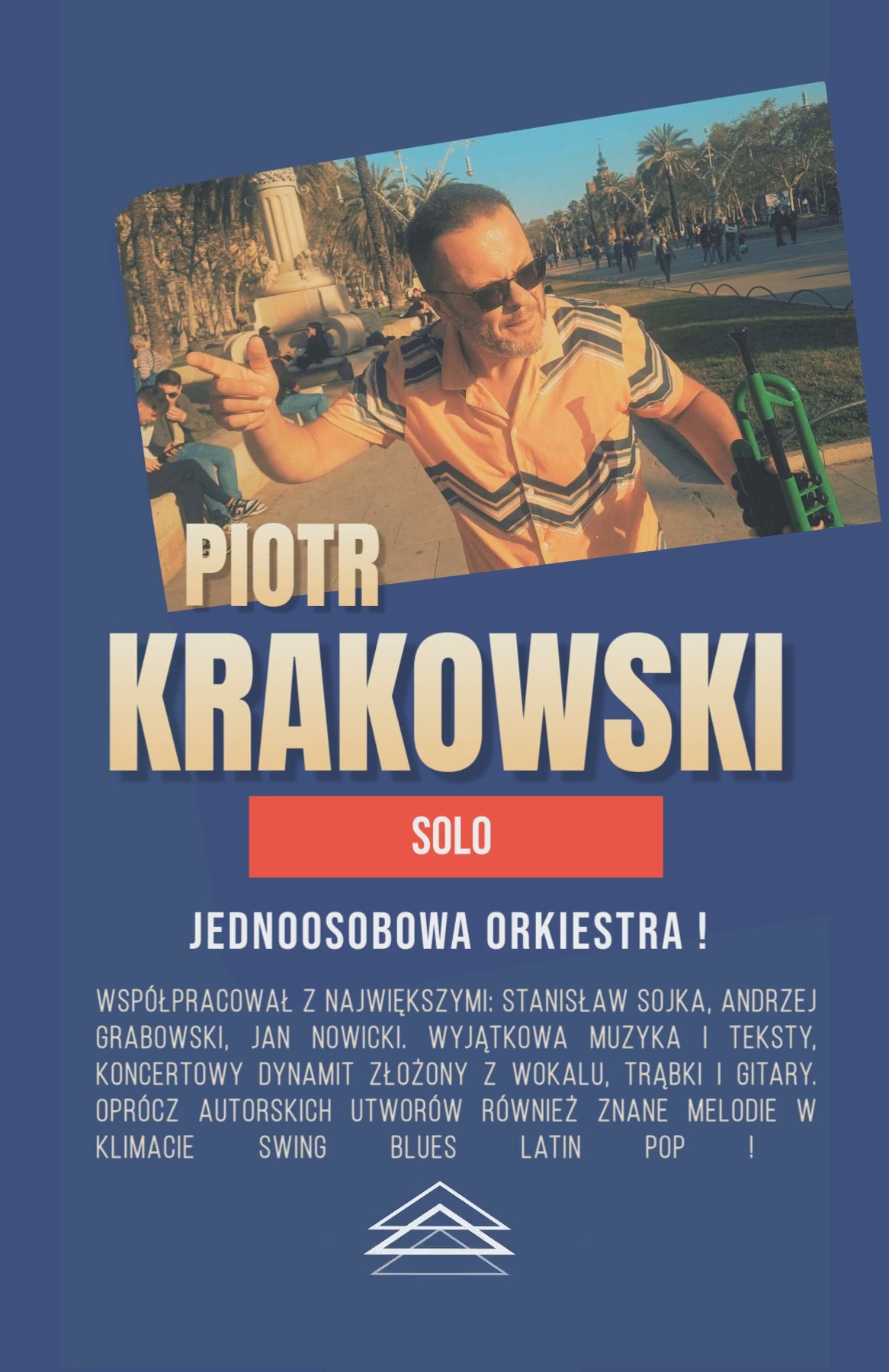 Piotr Krakowski - kompozytor, trębacz, multiinstrumentalista i producent muzyczny. Jego charakterystyczne tematy muzyczne ozdabiały wiele filmów i programów. Wyjątkowa muzyka i teksty. Jednoosobowa orkiestra. Na koncercie artysta prezentuje głównie utwory z wokalem, z instrumentalnymi wstawkami trąbki i gitary. Muzyka w klimacie swingu, bluesa i latino z elementami soulu. Oprócz autorskich utworów również znane standardy. Współpracował z największymi, żeby wymienić tylko Stanisława Sojkę czy Andrzeja Grabowskiego.